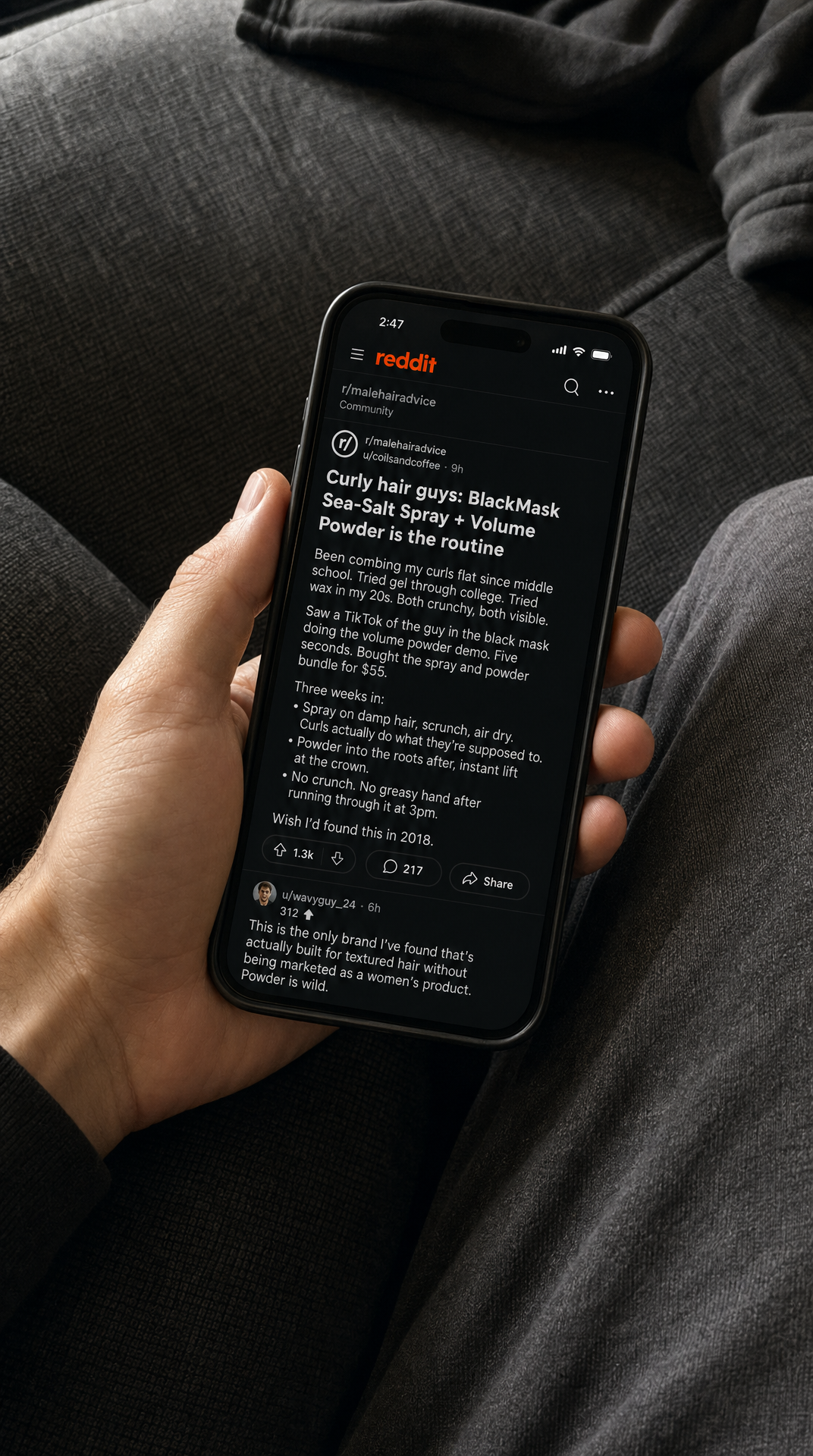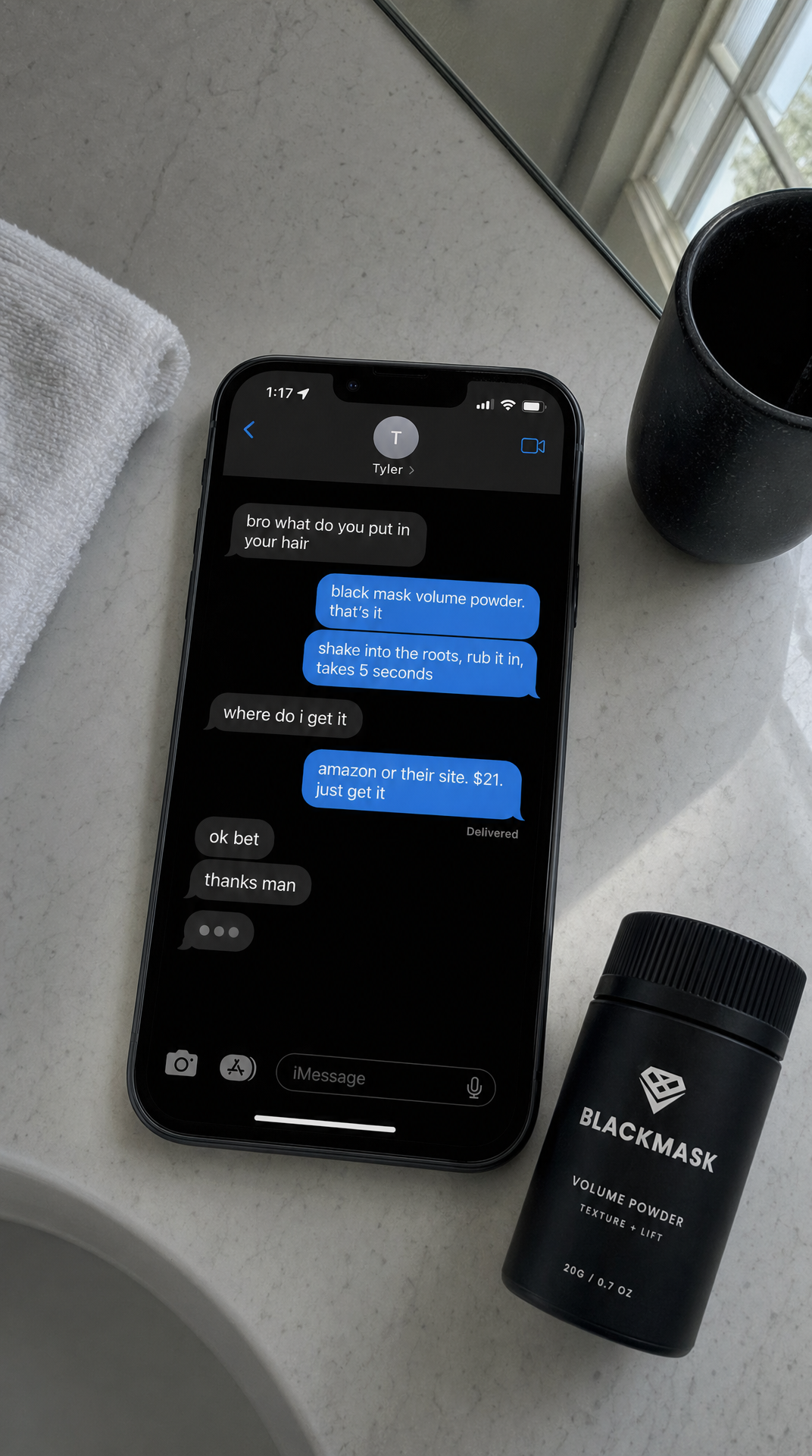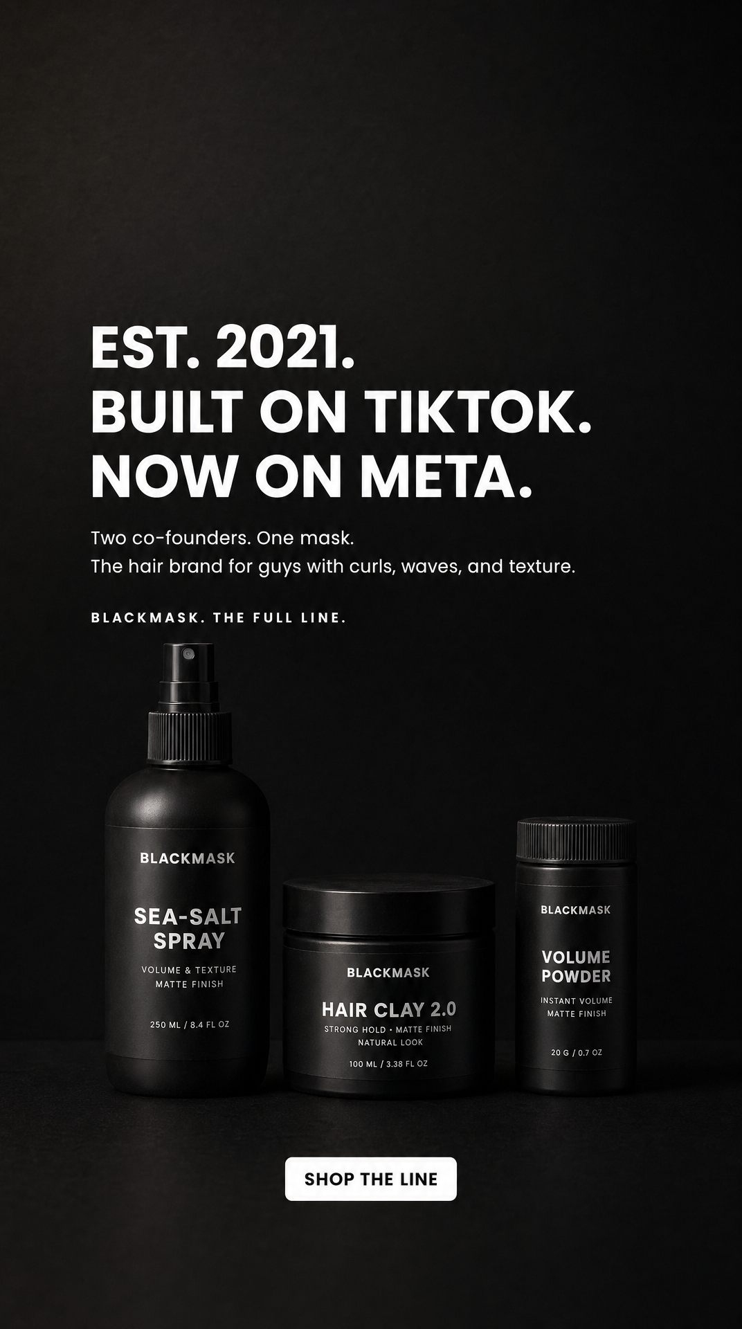 Sixteen of these, built for BlackMask, every week. 14 statics plus 2 UGC scripts, tagged by persona, angle, and emotion. Straight into Slack.